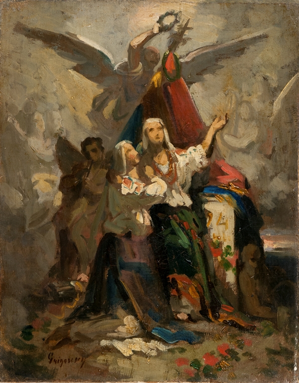 Din păcate schițele pe care Grigorescu le evocă nu s-au mai păstrat. Câțiva ani mai târziu, în contextul experienței franceze, artistul avea să realizeze mica schiță în ulei - Unirea Principatelor -, probabil în pregătirea unei ample compoziții care nu a mai ajuns niciodată să fie executată. Desigur, la acel moment – în preajma lui 1866-, când domnitorul Alexandru Ioan Cuza fusese înlăturat iar principele Carol I era proaspăt instalat, contextul politic se schimbase, iar rememorarea Unirii Principatelor devine relevantă dacă ținem cont de faptul că recunoașterea ei fusese garantată de către Imperiul Otoman numai pe durata domniei lui Cuza. Prin intermediul unor astfel de imagini se atrăgea atenția asupra fragilității Unirii Principatelor.